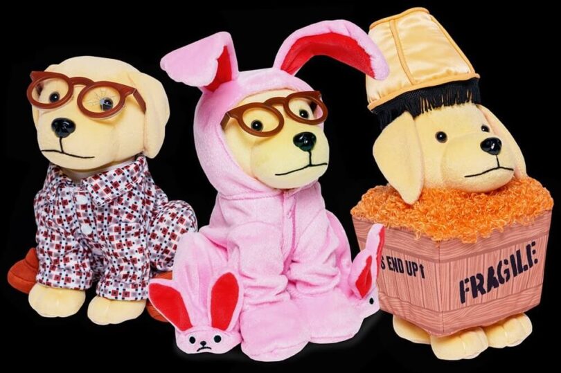 Ralphie Cane: Cane III steps into Ralphie Parker’s slippers and classic Christmas morning pajamas, a nod to one of A Christmas Story’s most unforgettable moments where Ralphie nearly “shoots his eye out,” cracked glasses and all. This Plush Puppy captures Ralphie’s wide-eyed excitement and the timeless magic of a childhood wish come true.