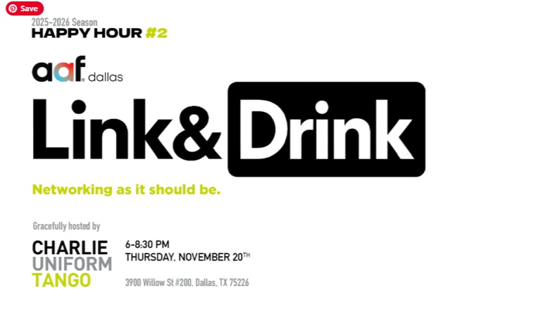 Join AAF Dallas for our November networking happy hour! Thank you to Charlie Uniform Tango for hosting!