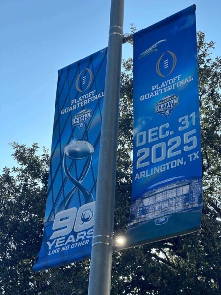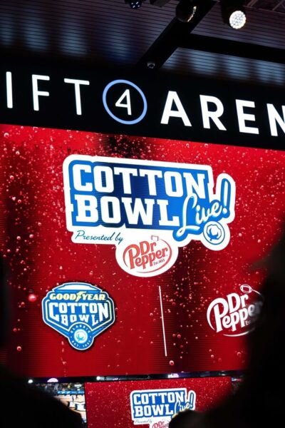Belle: The original concept set out to honor the historic 90th Goodyear Cotton Bowl Classic while signaling its future within the ever-evolving College Football Playoff, highlighting the game’s elevated status as a Quarterfinal on the sport’s biggest stage. It highlighted not just the game itself, but everything surrounding it: the fans, the community impact of Dallas–Fort Worth Metroplex, the crowd, the environment, and the pride that comes with college football. We wanted fans to feel the moment before it even began, and to see the Cotton Bowl as an essential stop in the College Football Playoff season.