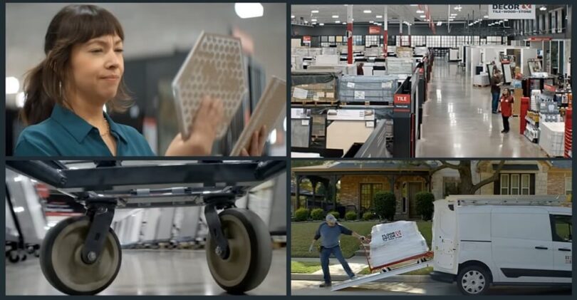 For homeowners, the campaign taps into the excitement and uncertainty that comes with making big design decisions. In “Cart Call,” a rogue shopping cart takes on a personality of its own, leading a shopper through the store in a playful, almost magical journey toward the perfect tile. The spot balances whimsy with craftsmanship, using practical effects—like a fishing line to guide the cart—rather than heavy CGI to create a grounded sense of wonder. Similarly, “Way In” transforms the in-store experience into something transportive, turning Floor & Decor’s oversized display panels into portals that allow shoppers to envision flooring in real-life settings.